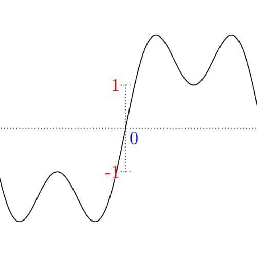 As discussed in Part One with color theory, if a signal can oscillate between -1 and 1, where -1 is black and 1 is white, then 0 would be grey. So looking at the above, the signal is grey everywhere except at the origin where it’s white (which is where it jumps up).